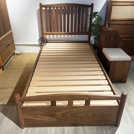 DELIGHT Bed Frame 02 實木油壓床架 - 胡桃木(條紋床頭板款式)|可訂造非油壓