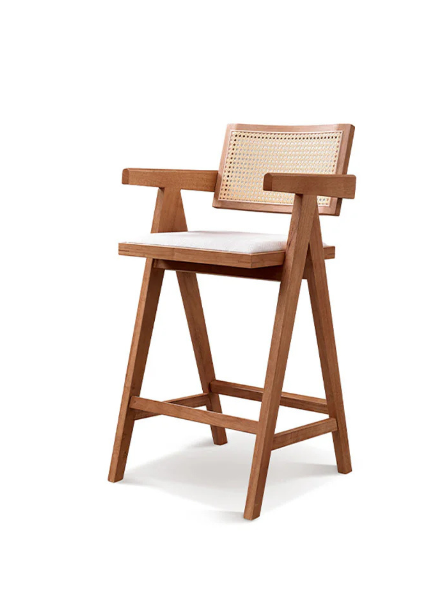 實木藤織吧椅,以馬來西亞橡膠木(Malaysian Rubber Wood)製作。靠背及扶手設計,提供舒適的支撐,而且為軟墊座位,久坐在吧椅上都不怕累!
