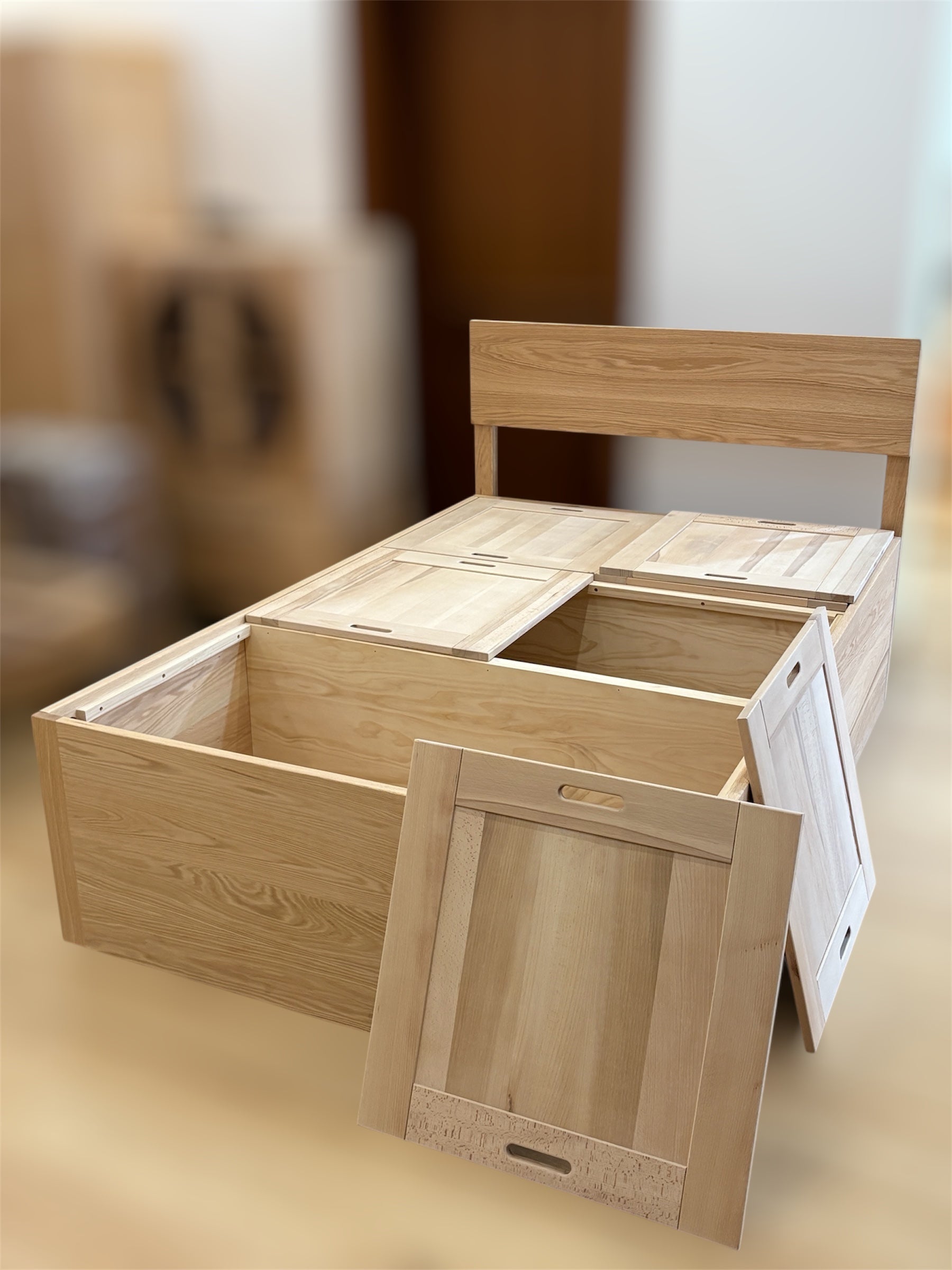 可按需要訂造尺寸及木種,打造真正貼合你生活方式的實木儲物床。