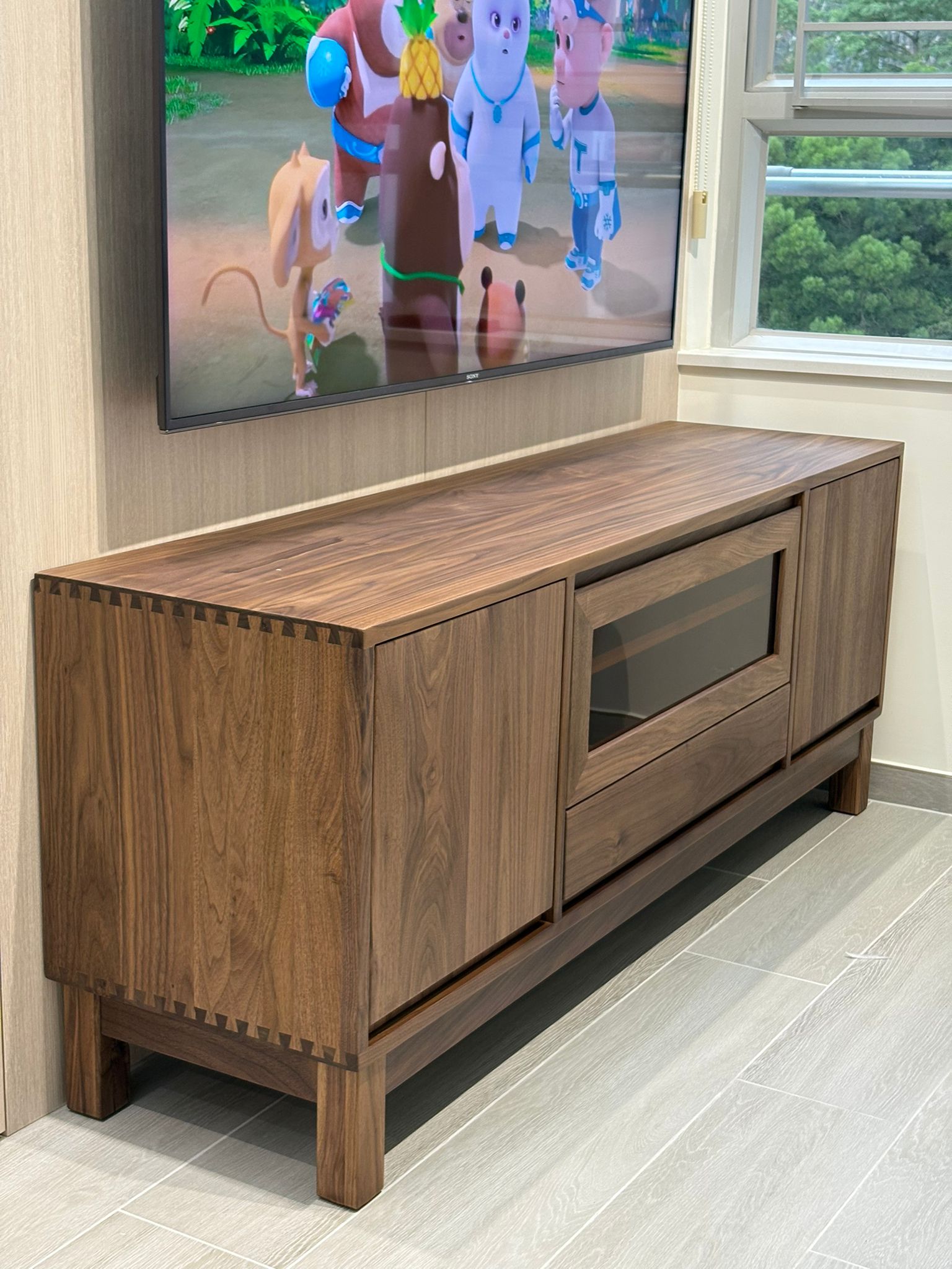 實木電視櫃,以美國胡桃木(American Walnut)製作。
