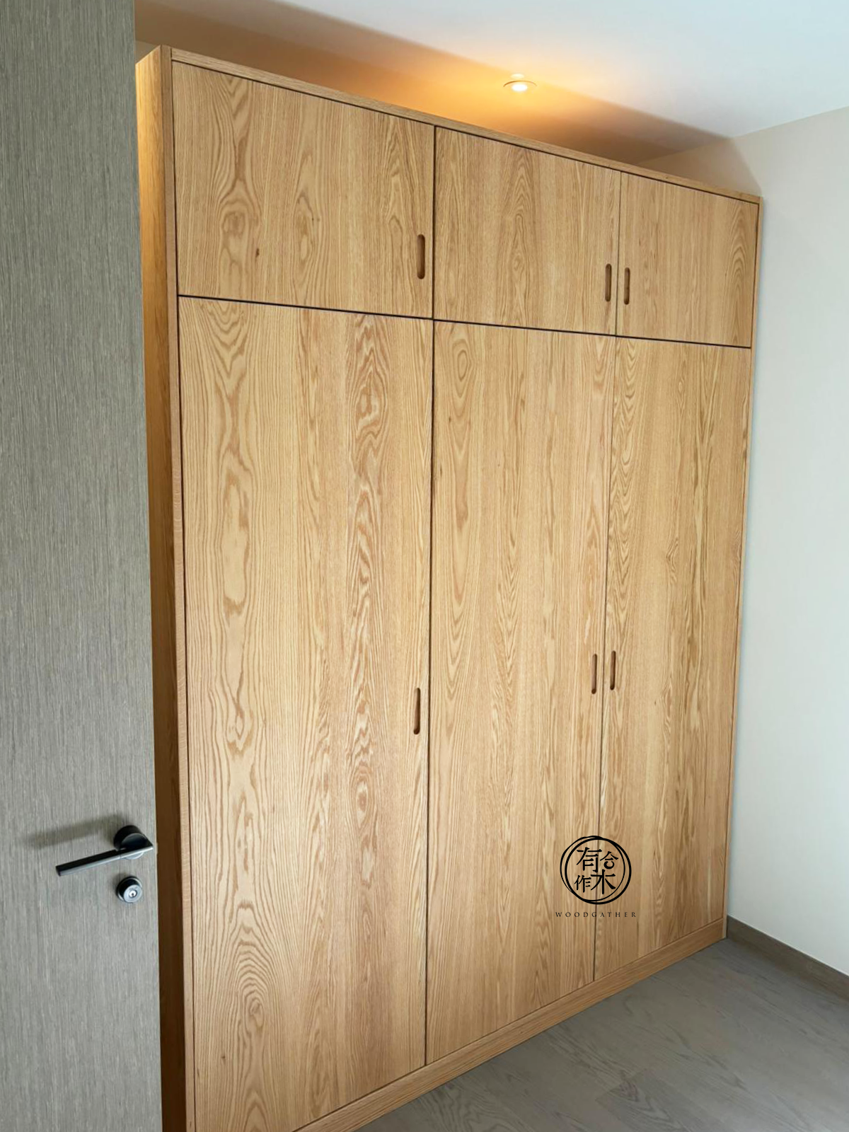 實木衣櫃,以美國橡木(Oak) 製作。衣櫃間隔很視乎個人使用及穿衣習慣,建議聯絡我們報價啊~例如配飾較多,可考慮多造櫃桶;長褸/長裙多,則可擴充長身掛衣區。