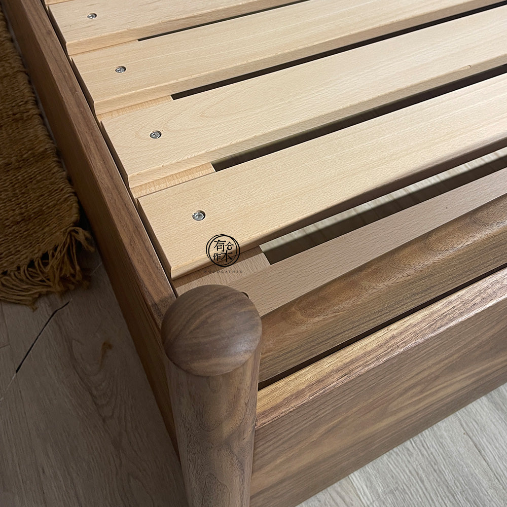 Wood Type: 胡桃木(床架+床頭板)、櫸木(床板)、松木(床底板+櫃桶內籠)